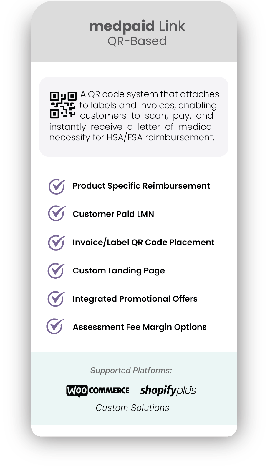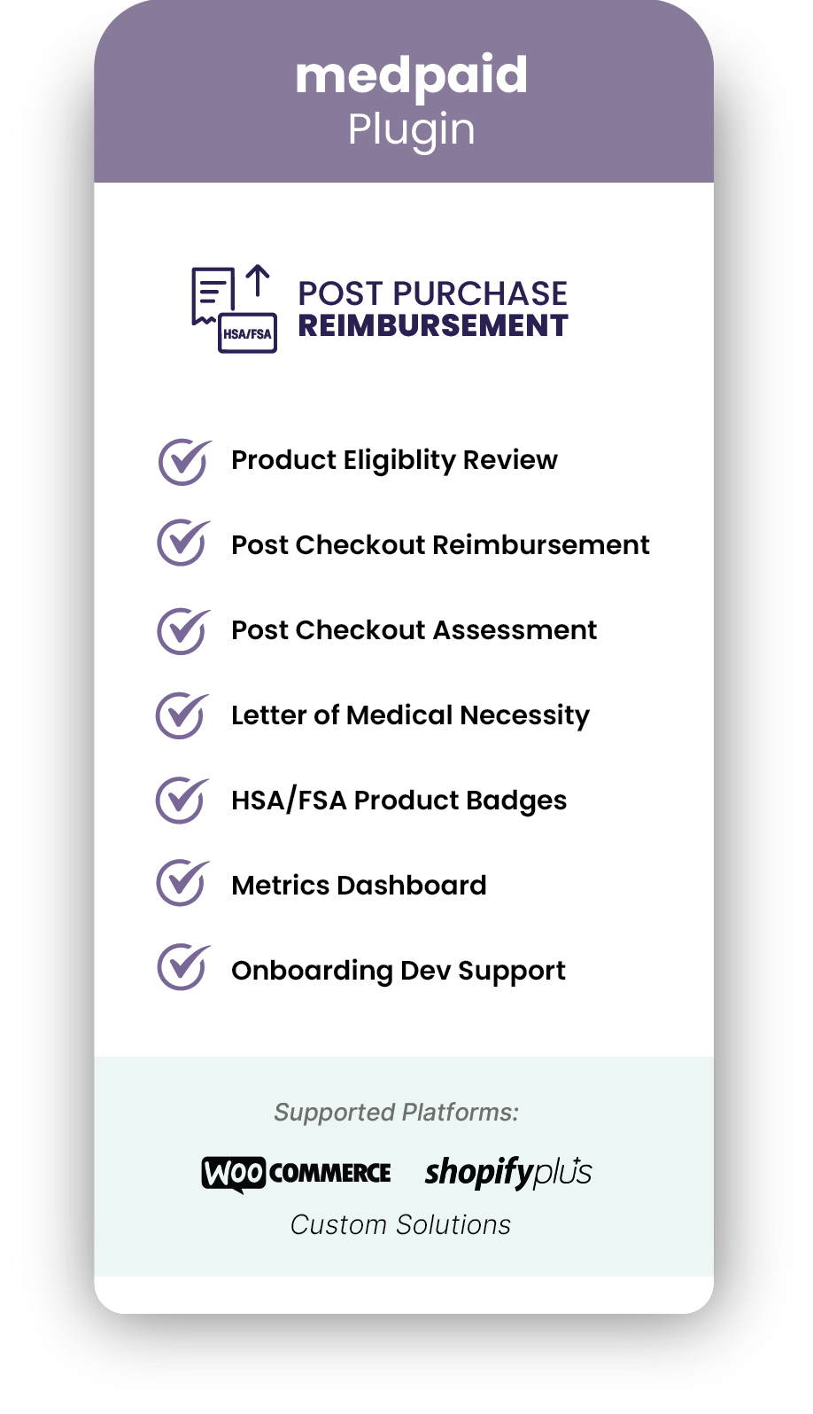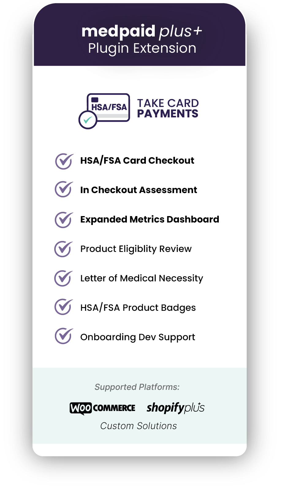 By integrating Medpaid SaaS, you tap into the $150B HSA/FSA market, filled with customers actively searching for products they can purchase with their HSA/FSA funds.