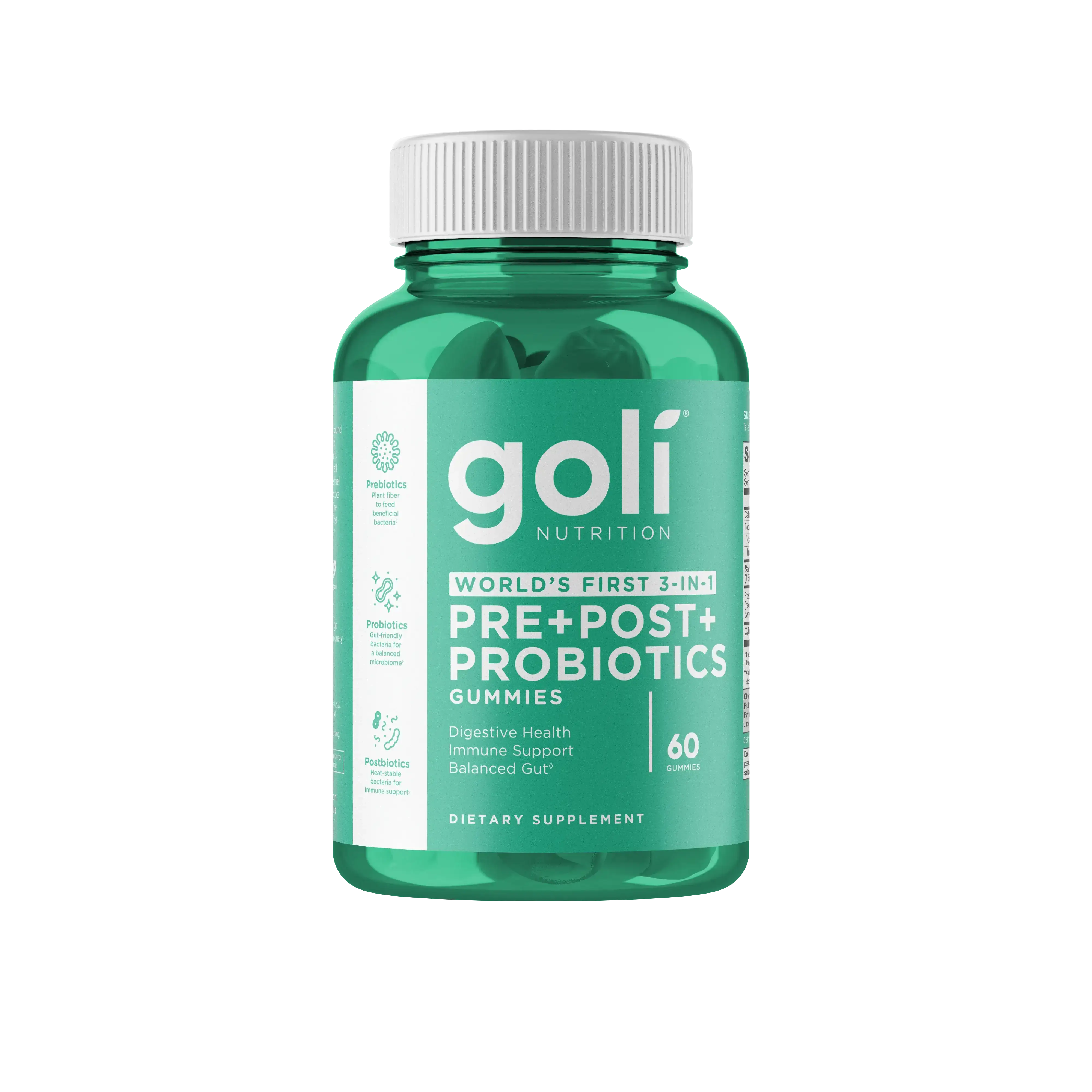 1 Bottle of Goli Nutritional Supplement, Pre+Post+Probiotics Gummy - 60 Count - World's First 3-in-1 Gluten-Free, Vegan, Non-GMO, and Gelatin-Free.