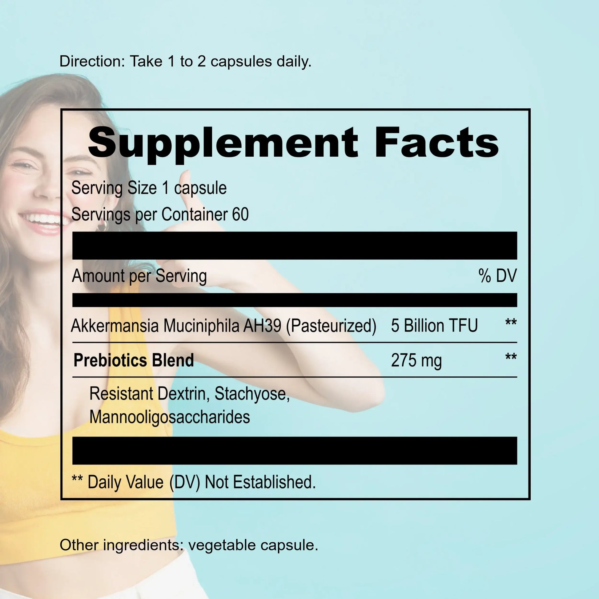 Akkermansia Muciniphila is a probiotic discovered in 2004 and is considered as "the next generation probiotic". Many studies have linked Akkermansia to various metabolic health. Each UpNourish Akkermansia Muciniphila capsule contains 5 Billion AFU pasteurized strains along with prebiotics resistant dextrin, stachyose, mannoligosaccharides.