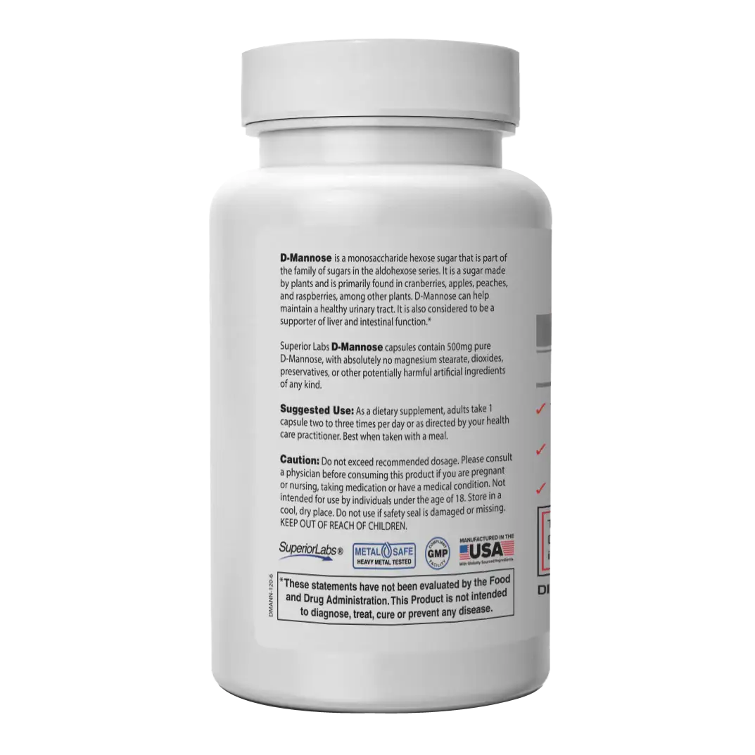 D-Mannose is a monosaccharide hexose sugar that is part of the family of sugars in the aldohexose series. It is a sugar made by plants and is primarily found in cranberries, apples, peaches, and raspberries, among other plants. D-Mannose can help maintain a healthy urinary tract. It is also considered to be a supporter of liver and intestinal function.*