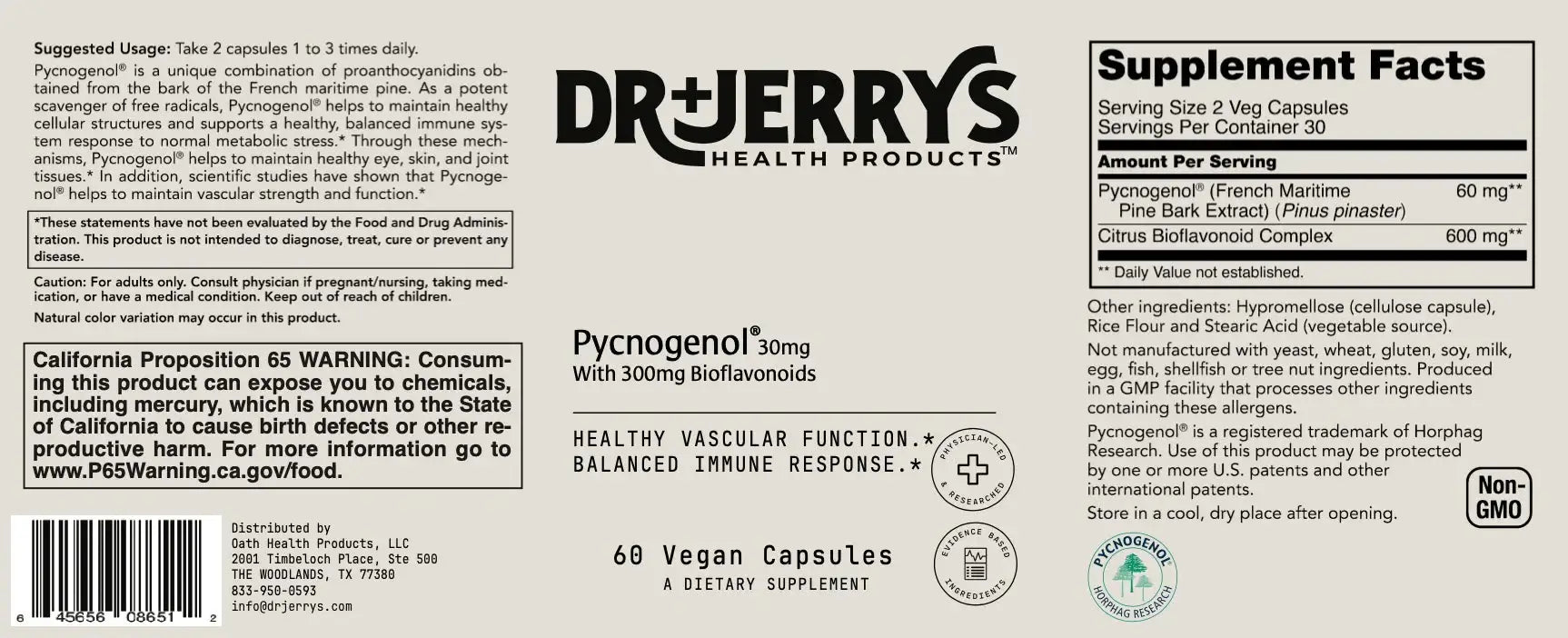 Dr. Jerry's Pycnogenol 30mg with 300mg Bioflavonoids (60 Vegan Capsules)