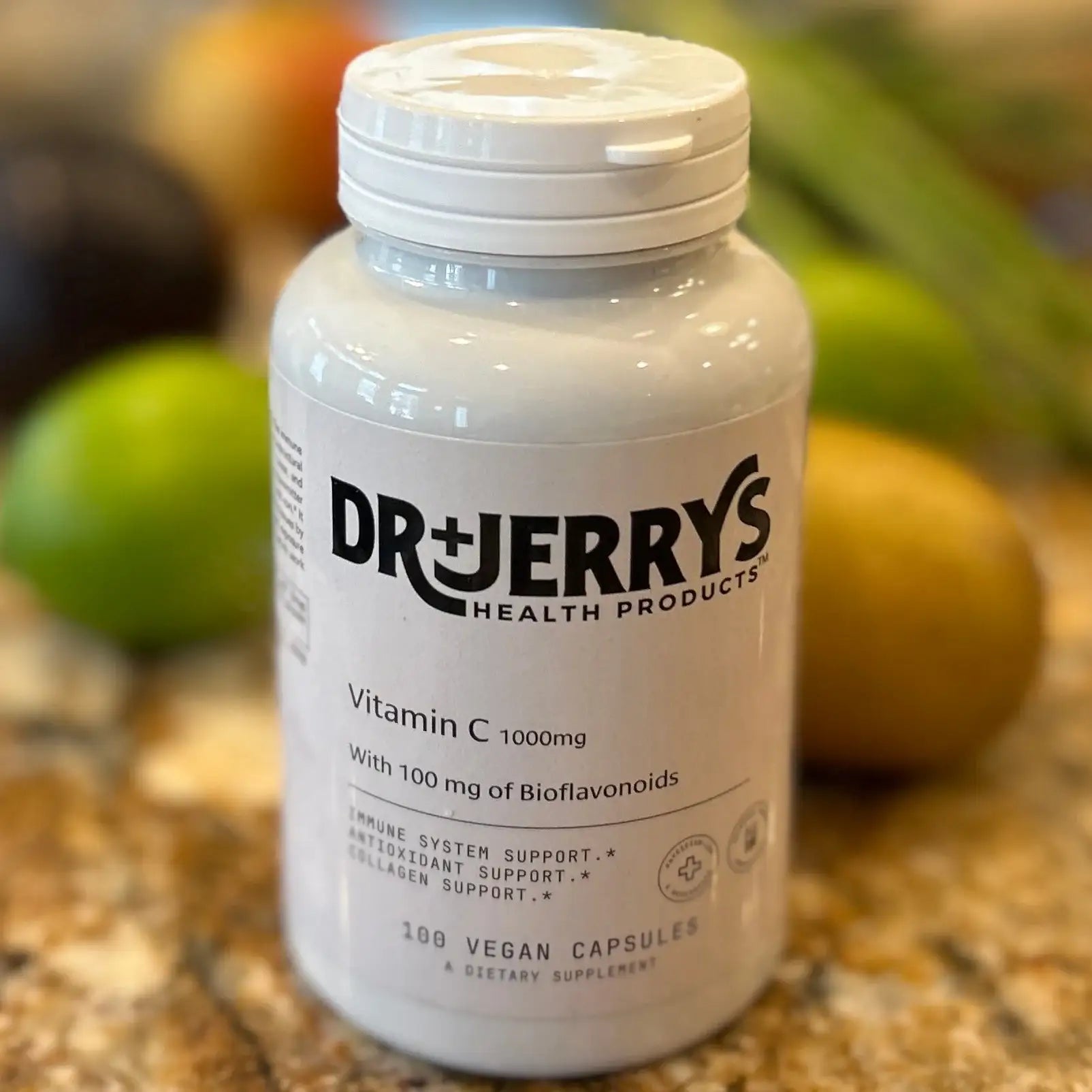 Dr. Jerry's Vitamin C 1000mg with 100mg of bioflavonoids (100 Vegan Capsules) - immune system, antioxidant, and collagen support