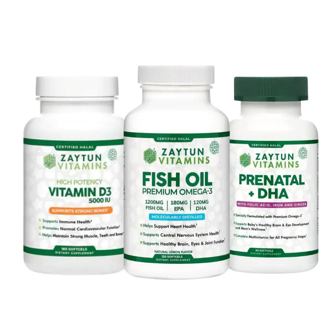 Fish Oil + Vitamin D3 5000IU + Prenatal + DHA Bundle