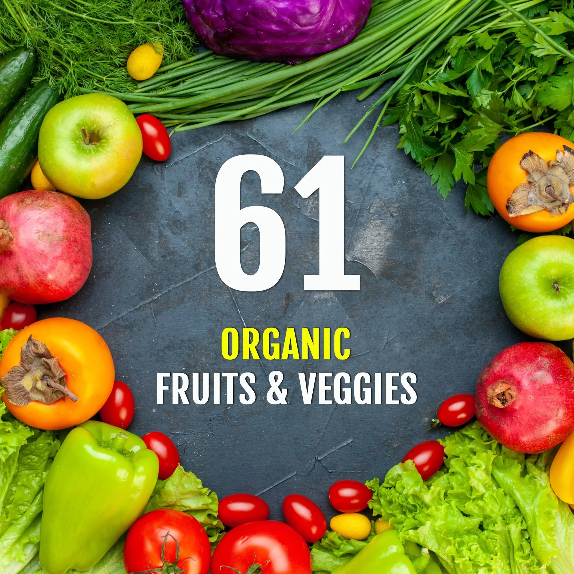 UpNourish Daily Fruits and Veggies contain 61 organic fruits and vegetables. Organic fruits and vegetables are made simple and easy, with 480 vegan capsules, our product supplies daily phytonutrients for a whole family.