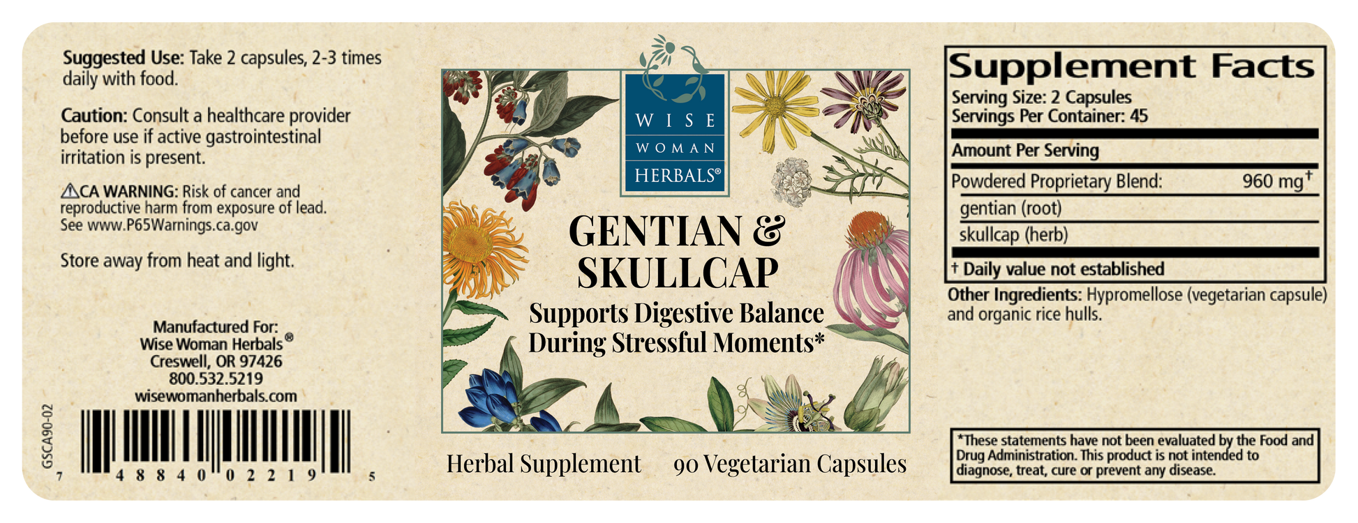 Ingredients: Gentian and skullcap in 100% vegetarian capsules.