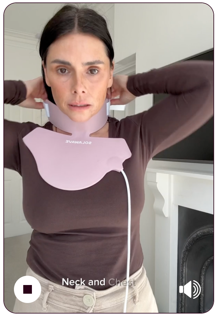 Designed for the areas most prone to sun damage and often left untreated. This hands-free mask uses dual-wavelength light therapy to visibly soften creases, improve tone, and support firmer-looking skin below the face.