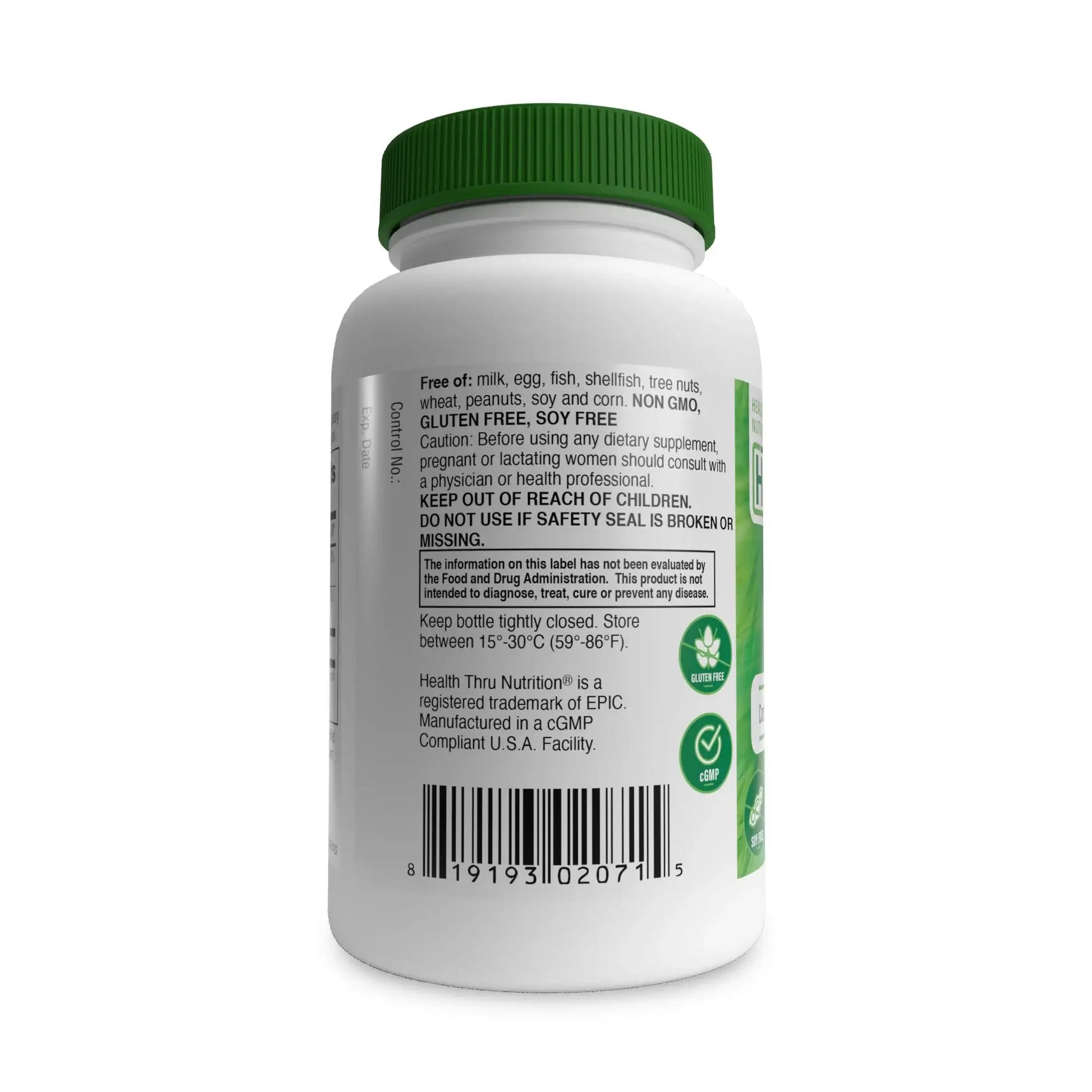 Health Thru Nutrition’s Vitamin K2+D3 supplement combines two essential nutrients that work together to support bone and cardiovascular health. Vitamin K2 plays a role in calcium utilization, helping to ensure it is properly directed to bones and teeth. Vitamin D3 supports calcium absorption, which is important for maintaining strong bones. Each capsule provides 100 mcg of Vitamin K2 and 1,000 IU of Vitamin D3.